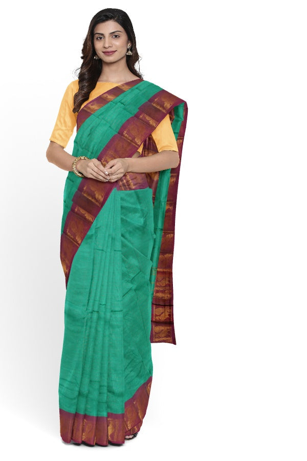 Experience the beauty and tradition of cotton sungudi sarees, a unique handloom style from Tamil Nadu. Lightweight and comfortable, these sarees are perfect for everyday wear or special occasions. Shop our collection today and add a touch of Tamil Nadu's heritage to your wardrobe with our beautiful cotton sungudi sarees.