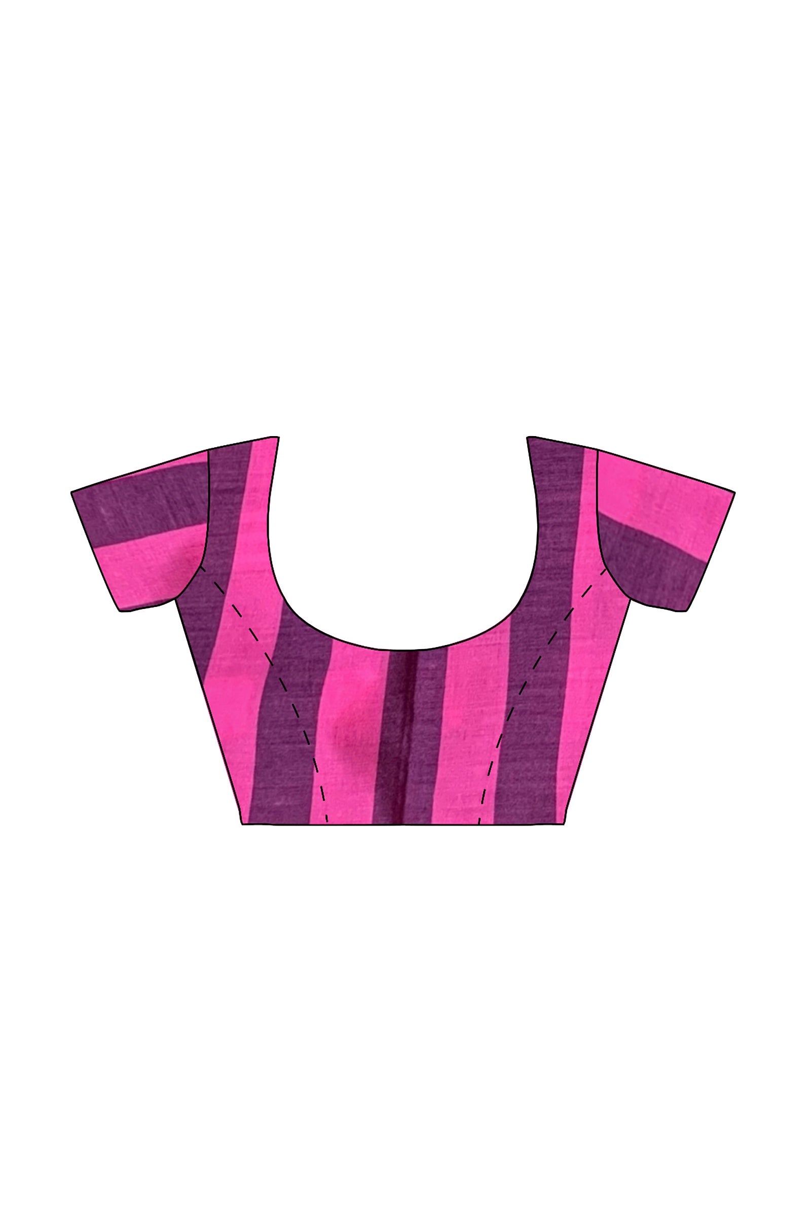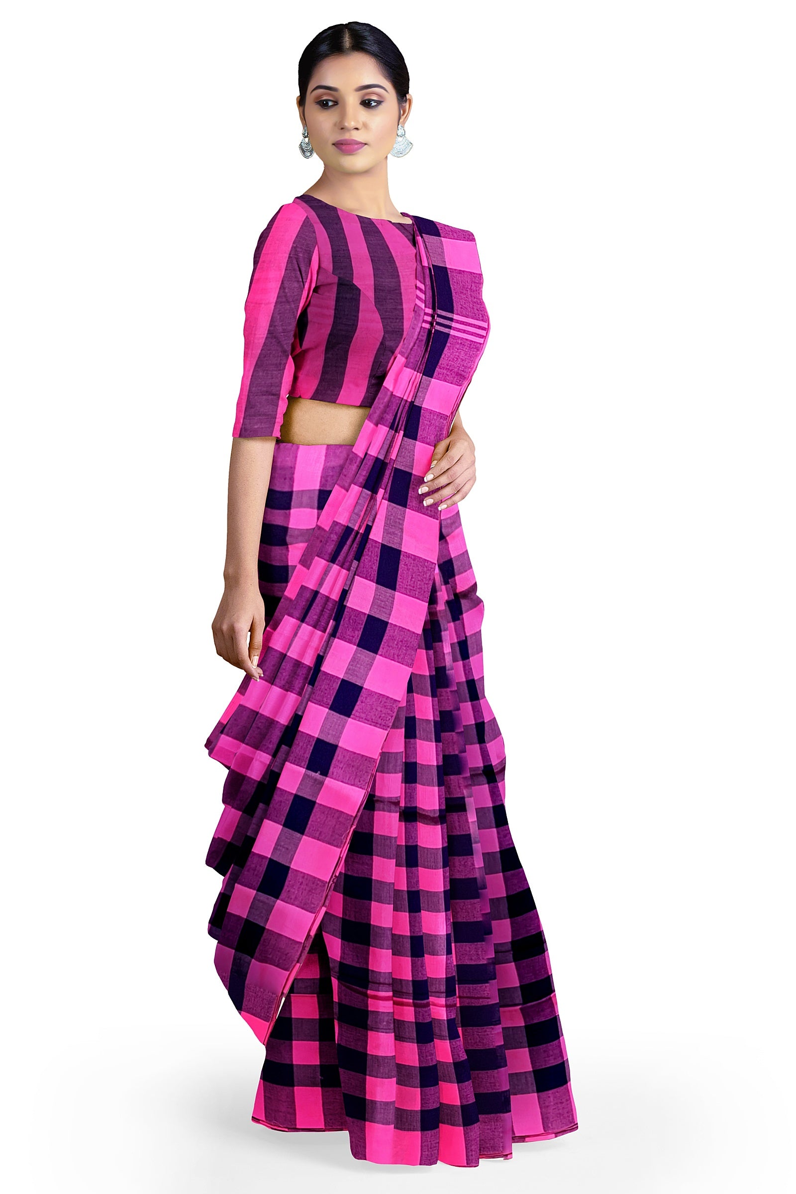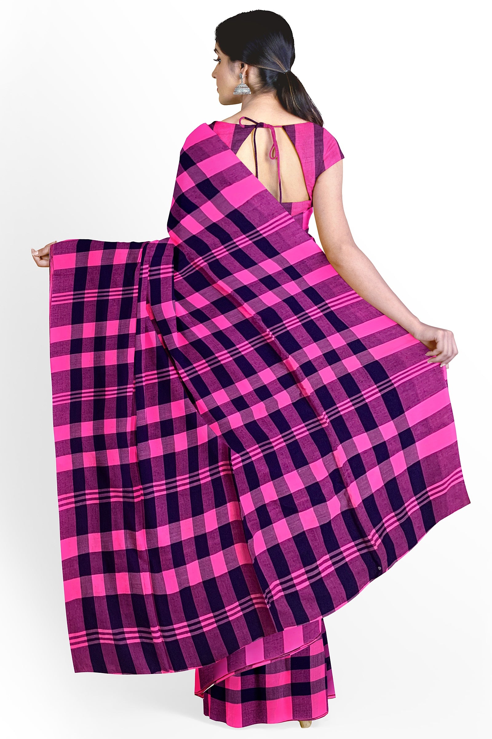 Pink And Blue Cotton Khadi Soft Handloom Saree